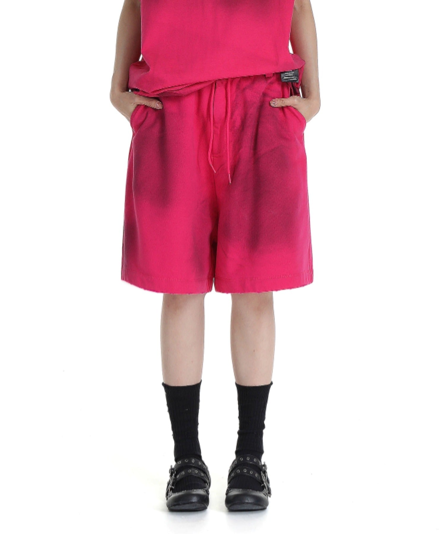 【SALE 60%OFF_特別価格適用※カートに入れるとセール価格が適用されます※】ルーズフィット 汚れ加工 品質タグデザイン スウェットハーフパンツ DK3090【MASONPRINCE】