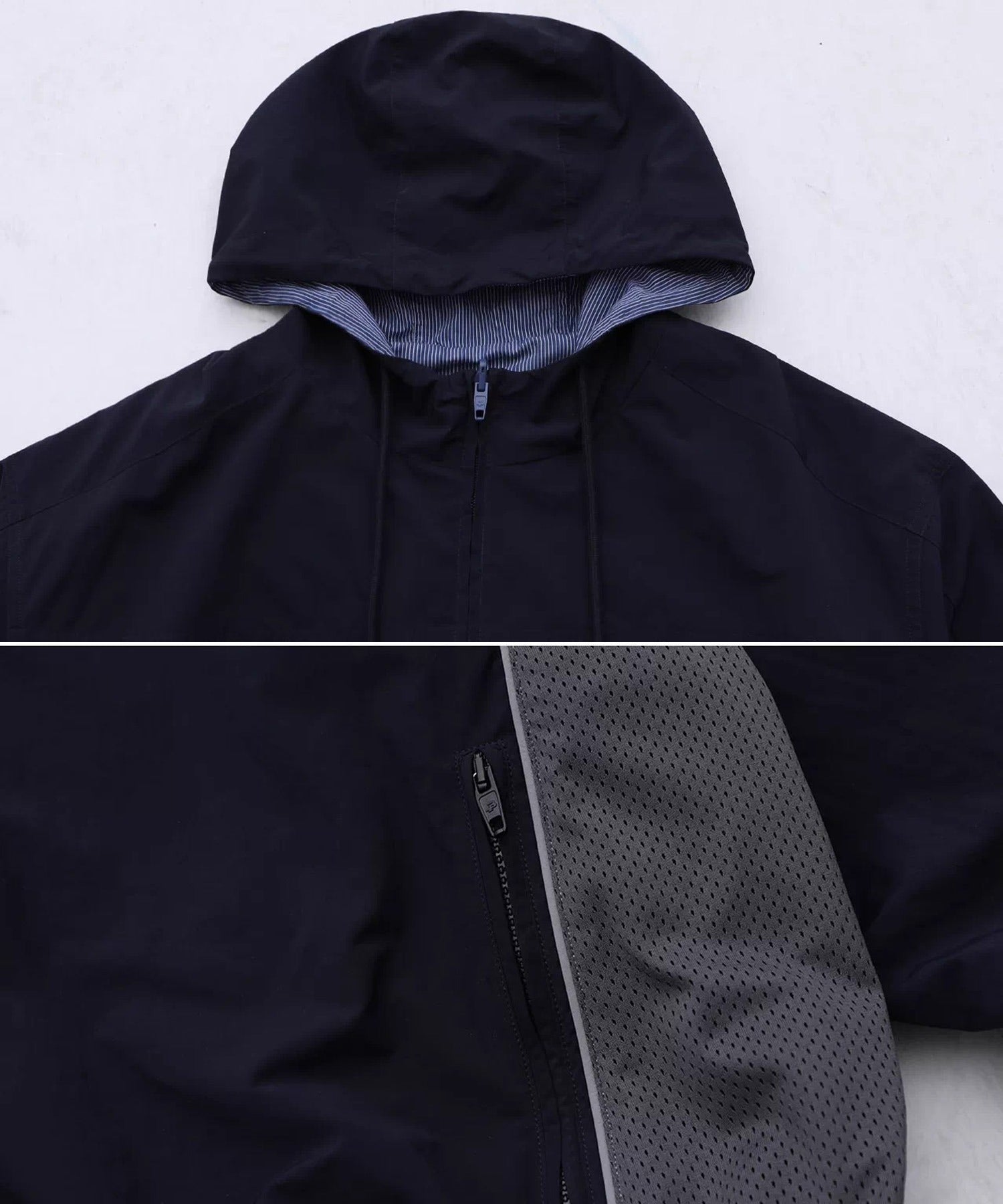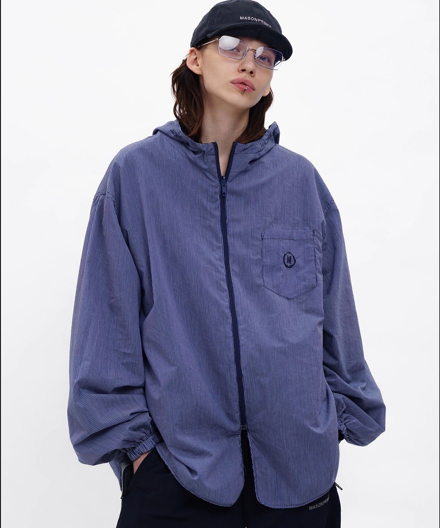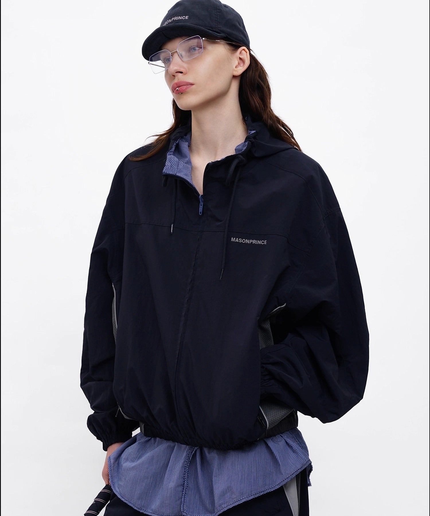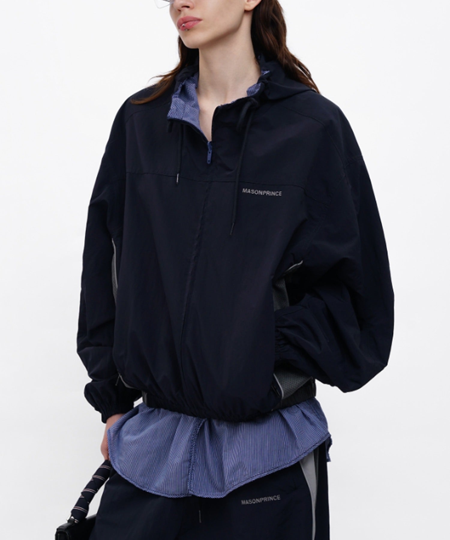 フード付き仕様がアクセントとなり、スポーティかつ都会的なムードを演出。